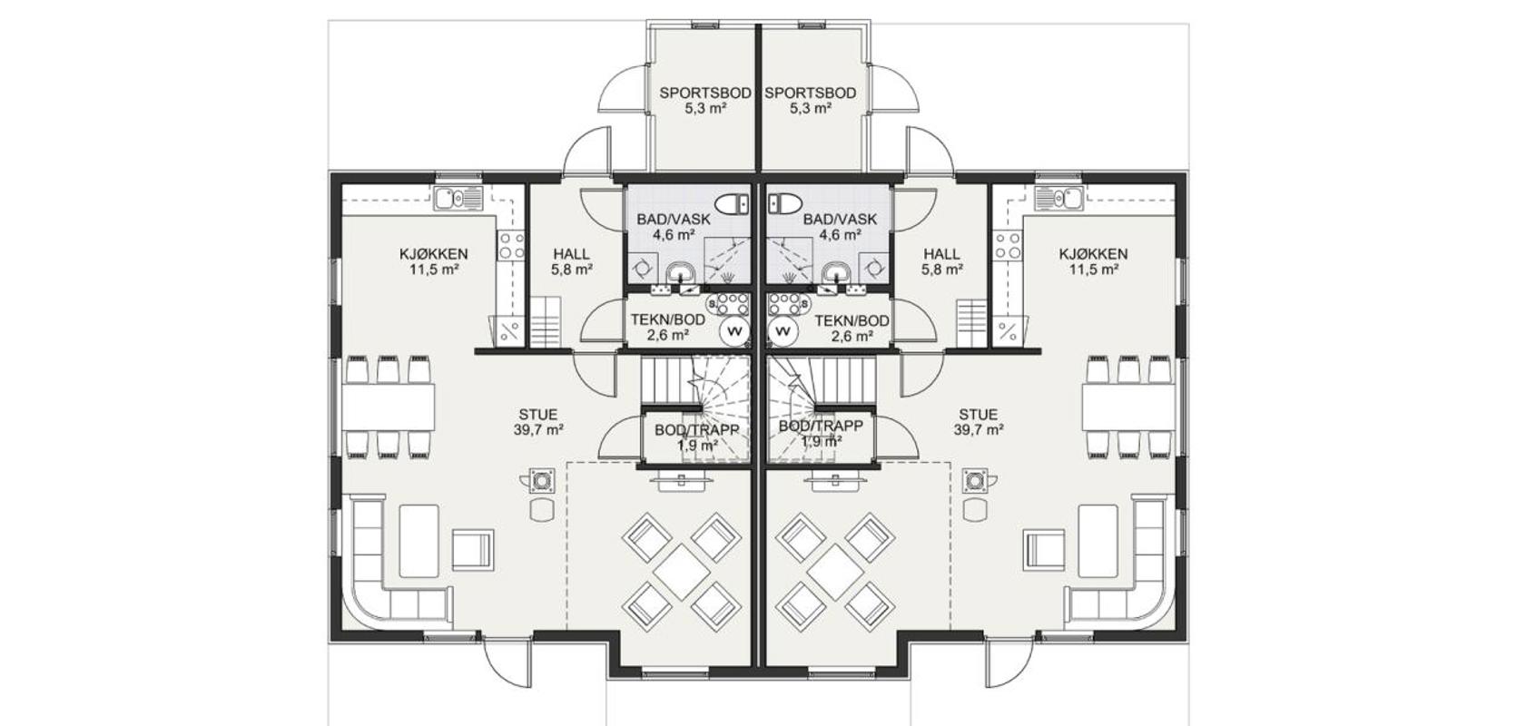 Mesterhus Norhild er en herskapelig og smart tomannsbolig med utbygd midtseksjon og svært praktisk planløsning.