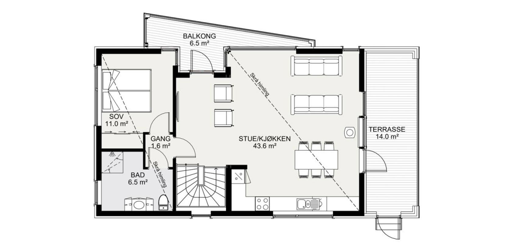 Signatur 308 er nøye tilpasset den skrå tomta det er bygget på, og arkitekturen tar hensyn til terrenget. Med moderne design, effektive planløsninger og tilpasning til skråningen, er Signatur 308 et attraktivt valg for de som ønsker et moderne funkishus tilpasset en skrå tomt.