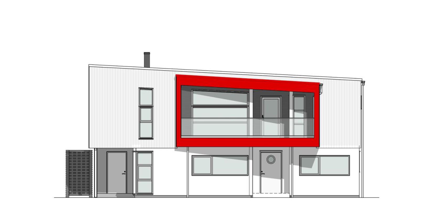 Signatur 308 er spesielt tilpasset en skrå tomt, og hovedinngangen er plassert i underetasjen. Under balkongen på hovedplanet finner du en romslig hall med inngang til en tv-stue, et stort bad med tilgang til eget vaskerom og to praktiske soverom. Det tredje soverommet ligger innenfor tv-stuen. På utsiden er det også en egen sportsbod, perfekt for oppbevaring av sportsutstyr eller hagemøbler.