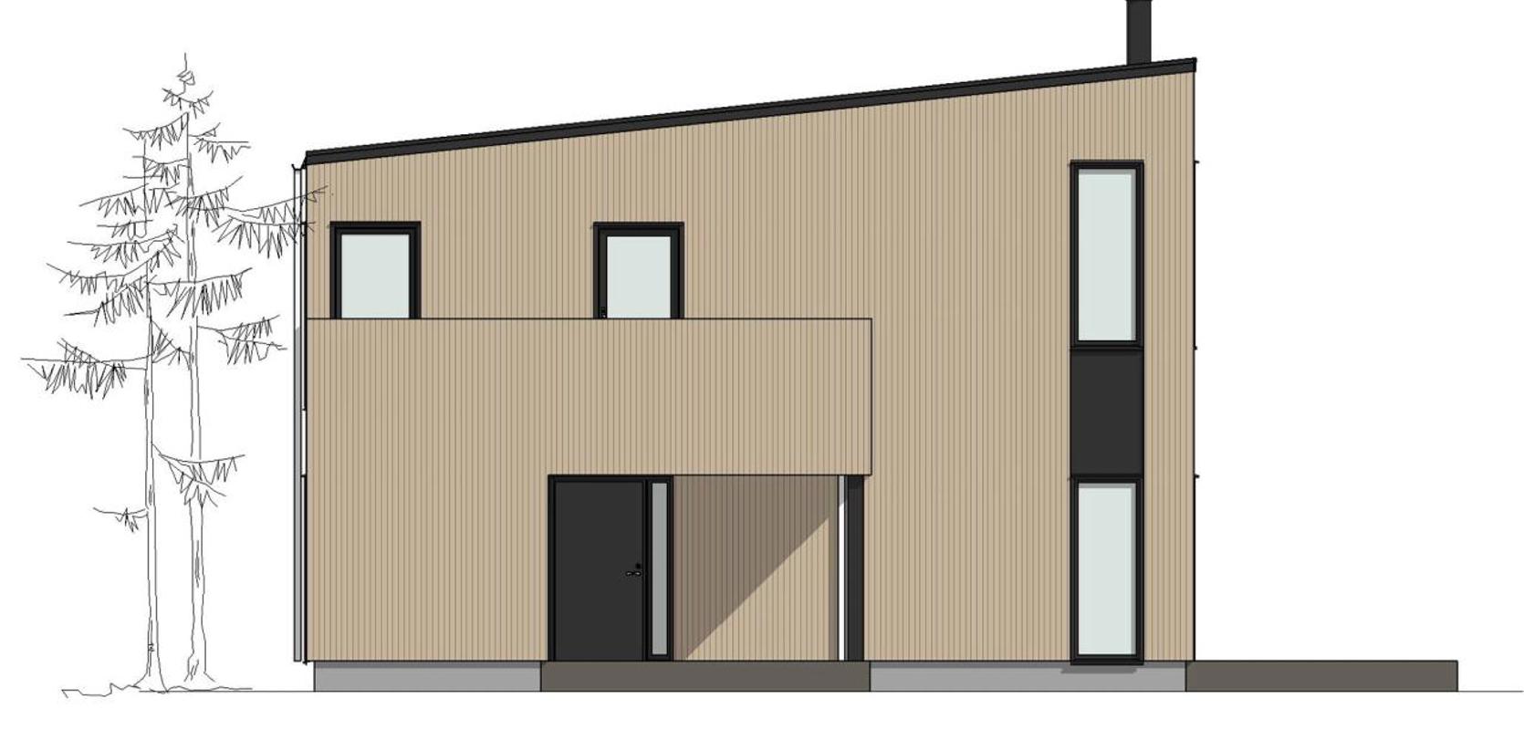 Skansen er et moderne hus med store vindusflater, pulttak og elegant stående trekledning. Samtidig som huset er svært stilig, har det alt en familie trenger.