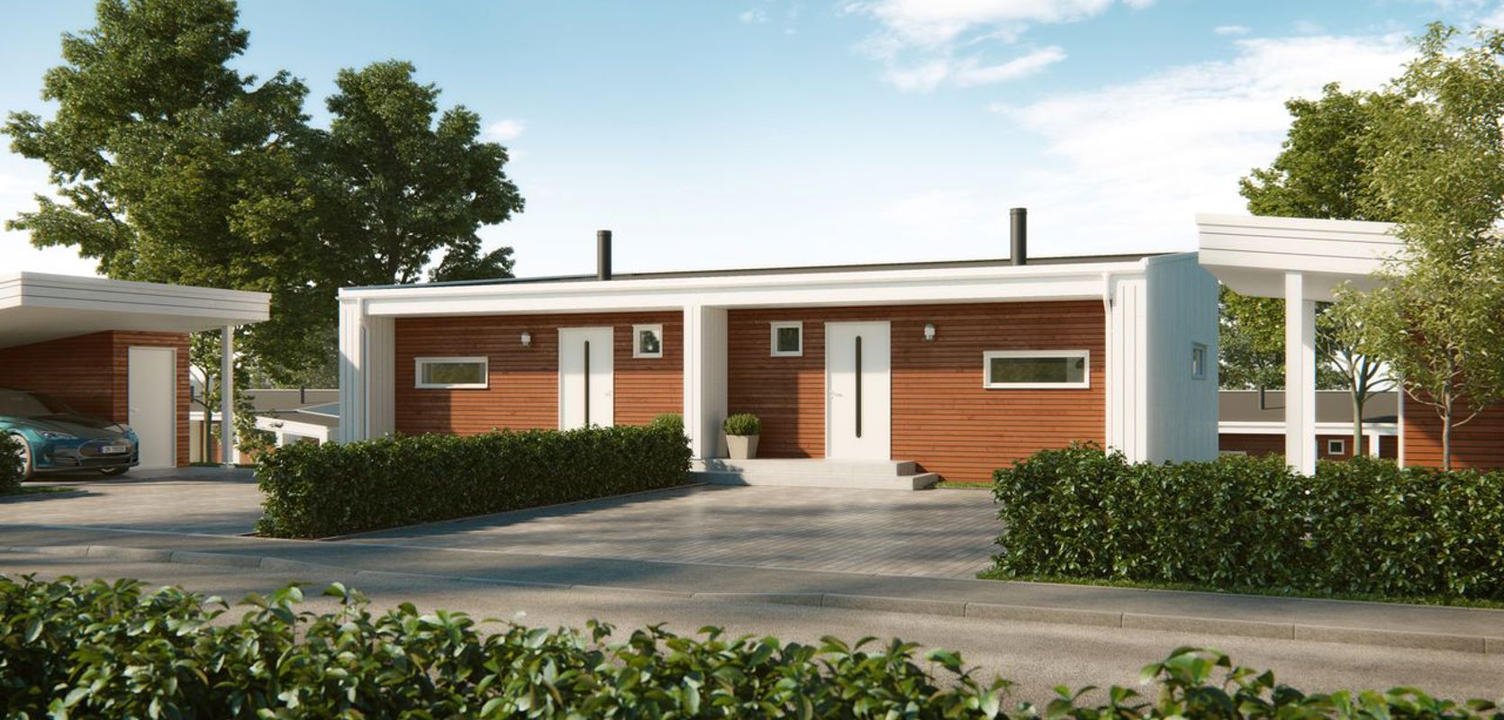 De store vinduene slipper rikelig med naturlig lys inn i boligen. Hver bolig strekker seg over to etasjer og gir rikelig plass å boltre seg på. I tillegg kan du utvide bruksarealet med en frittstående carport og sportsbod i samme stil som huset, som tilfører ytterligere 26 kvadratmeter og øker lagringskapasiteten.